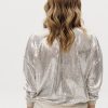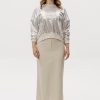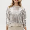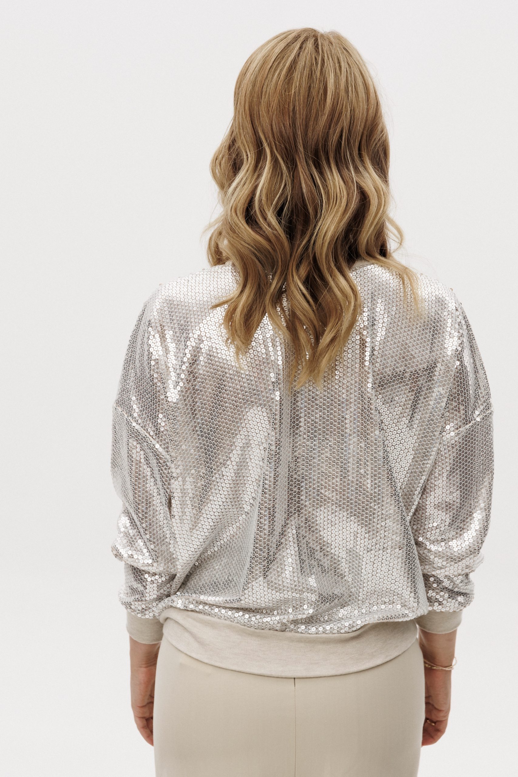 Свитшот прямого кроя из плотной ткани с пайетками — акцентная модель с комфортной посадкой. Основная ткань обладает устойчивой структурой и выразительным блеском. Довязы на манжетах, горловине и по низу изделия выполнены из мягкой смесовой пряжи с добавлением вискозы и шерсти — для тактильного комфорта и визуального баланса. Бежевый поясной элемент подчёркивает линию талии и создаёт завершённость образа. Модель подходит для вечерних и дневных акцентов, легко комбинируется с базовыми низами.