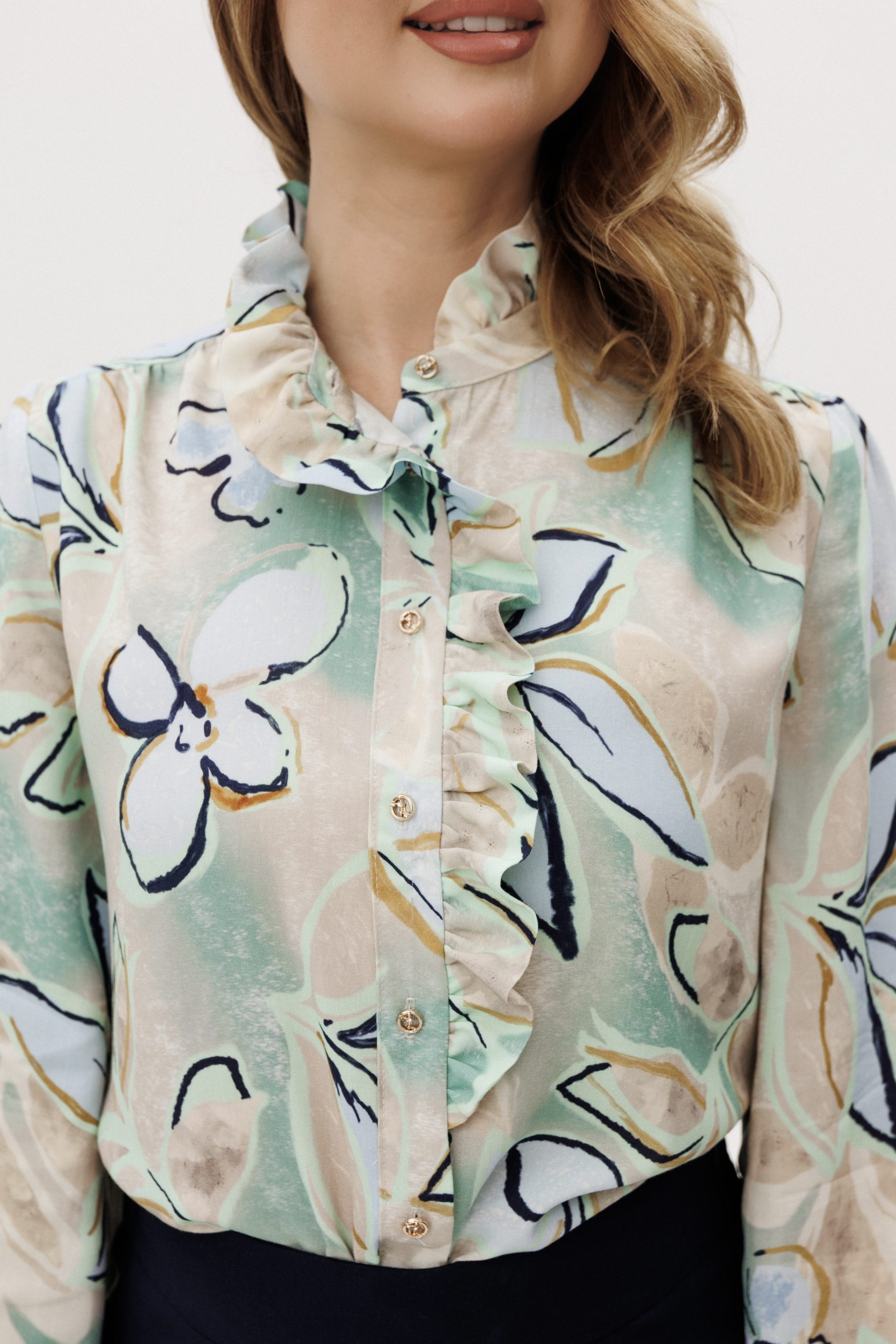 Рубашка с рюшами и декоративными пуговицами